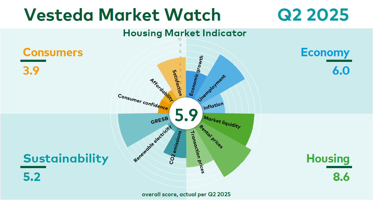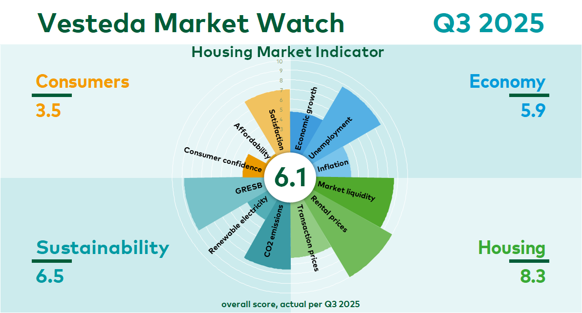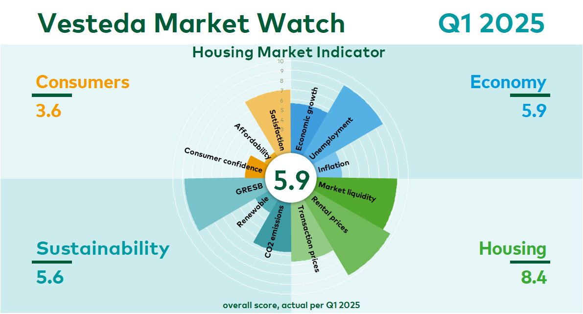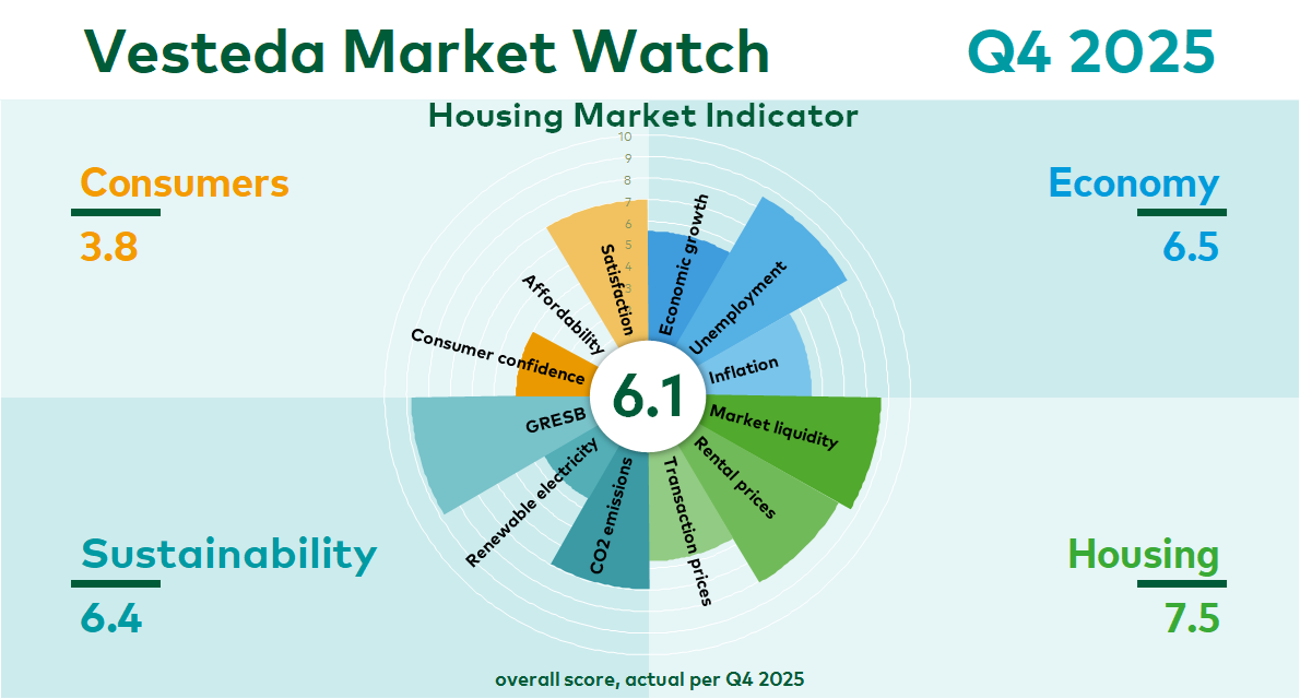 As the manager of the largest residential fund in the Netherlands, Vesteda believes it is important to increase the knowledge on the Dutch residential investment market and to promote transparency. With the Housing Market Indicator, Vesteda therefore offers more insight into current market developments on the Dutch housing market.